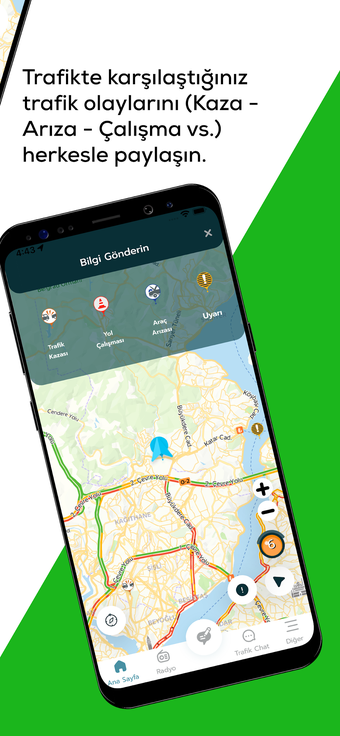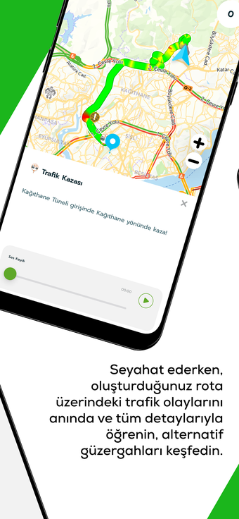 يمكنك إنشاء مسار عن طريق إدخال اسم المكان الذي تريد الذهاب إليه، ويمكنك التعرف على جميع الأحداث التي تؤثر على حركة المرور عن طريق تلقي إشعارات صوتية أو كتابية. يمكنك إضافة معلومات إلى خريطة الكثافة لدينا، ويمكنك مشاركة الناس الذين يقعون بالقرب منك حول شروط الطريق والطقس. يمكنك الاستماع إلى الراديو المروري في التطبيق، والوصول إلى هواتفنا، واتساب، وحسابات وسائل التواصل الاجتماعي، وتعديل خيارات الإشعارات، ومتابعة أخبار النقل والسيارات والمدينة.